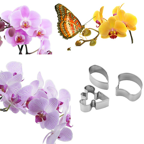 Molde de corte de Fondant Phalaenopsis, molde para hornear flores de azúcar de acero inoxidable, Juego de 3 herramientas de Fondant para comercio exterior